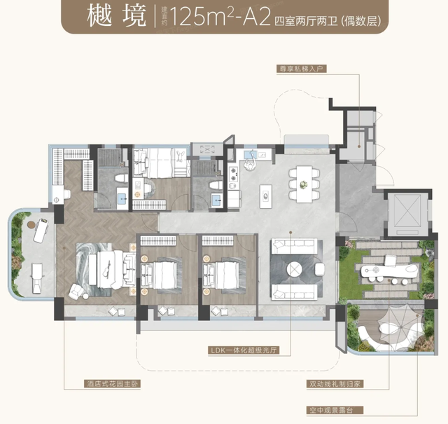 项目首推三大革新户型,以空中庭院体系实现"户户有园景"的居住理想: